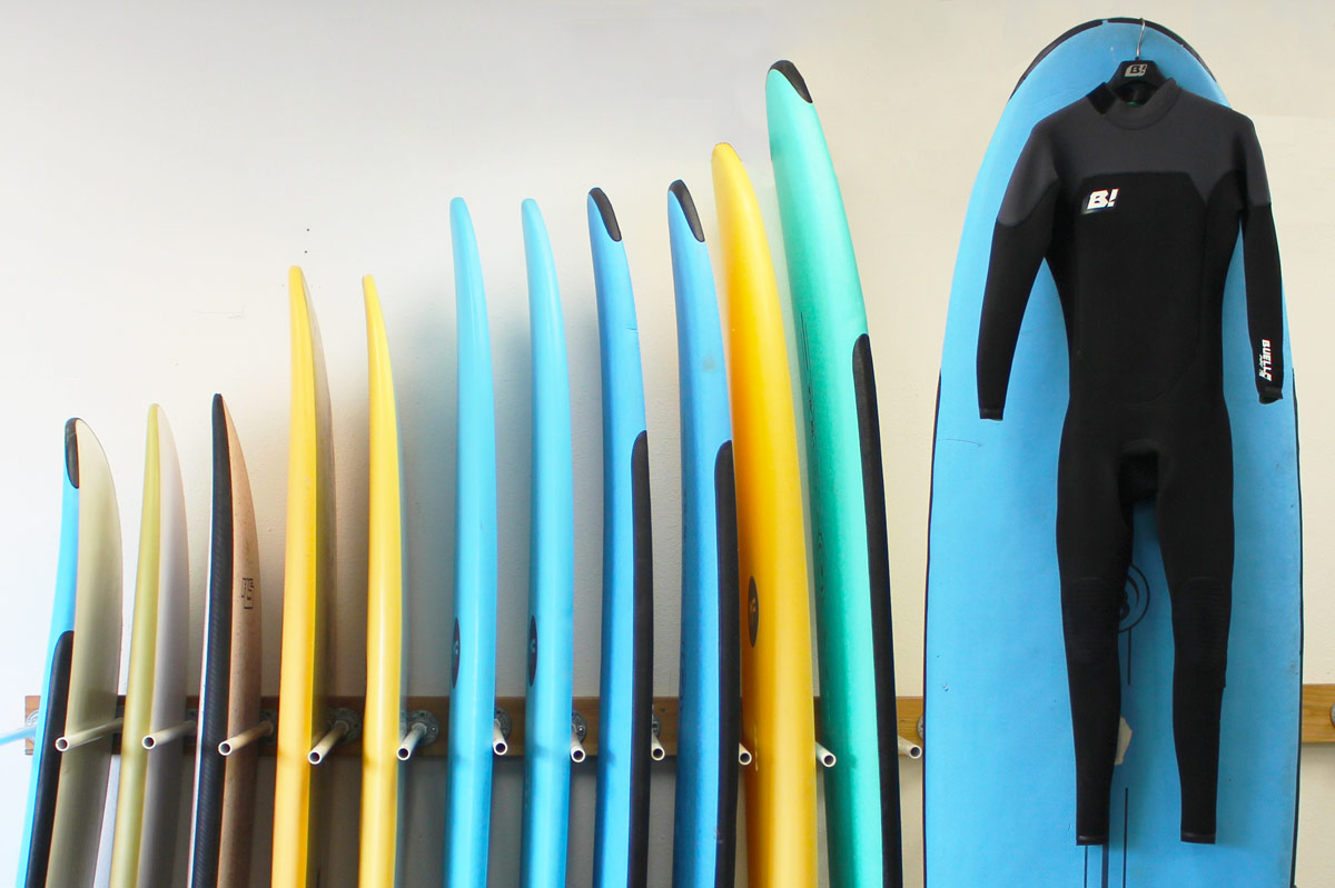 If you want to jump into the waves on your own, you can rent all the surf equipment you need for a perfect surf day from us. In addition to softtops, hardtops, and longboards in all imaginable shapes and sizes, you can also rent the matching wetsuit from us.
