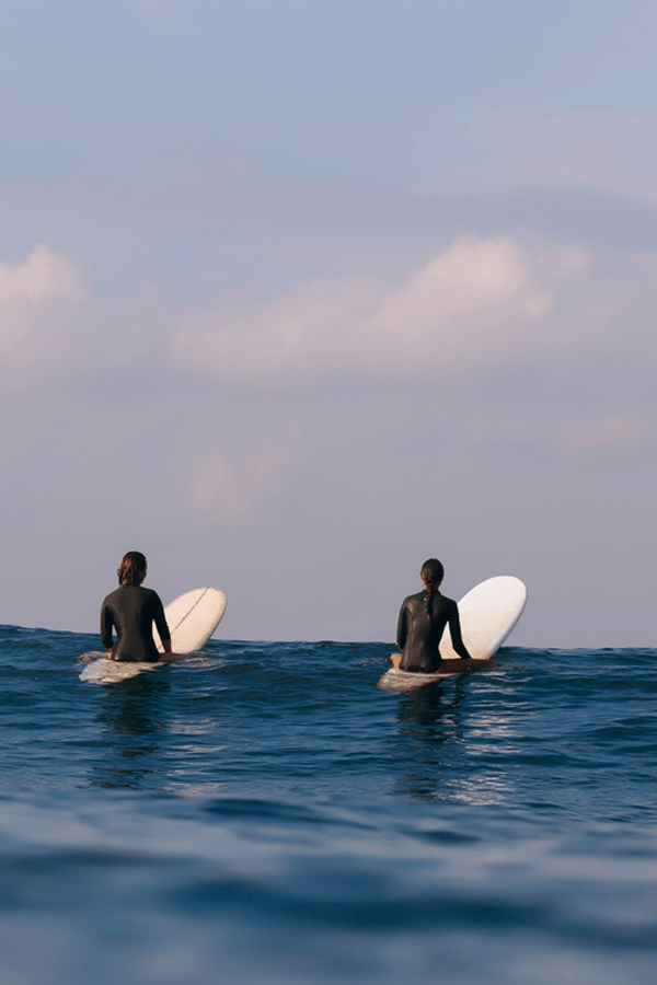 In addition to the paddle power, the board feeling of newcomers is usually not particularly well-developed. This is where you benefit from the stability that a surfboard with a large contact surface offers. You can position yourself on the board more easily without losing your balance and it will be more forgiving of mistakes. The large contact surface is not only influenced by the size of the surfboard but also by its shape, which is why a Malibu shape with a wide, round nose is ideal for beginners. We have the largest selection of this surf shape for you in our surf school on site.